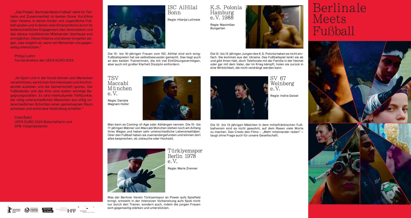 Mariette Rissenbeek von der Berlinale kam auf uns zu mit der Idee, elf Kurzfilme über Jugendliche und Fußball zu machen. Anlass war die EM 2024, die in Deutschland stattfinden wird. Als wir das hörten, waren wir schnell begeistert, weil wir gleich an das Konzept des Omnibusfilms denken mussten. Deutschland im Herbst, Loin de Vietnam oder vor ein paar Jahren Futura sind Filme, die uns begeistern. Sehr unterschiedliche Filmemacher*innen tun sich zusammen und machen einen gemeinsamen Film. Das hat eine ganz besondere Kraft. Man sieht auch viel mehr, als bei einem Film mit nur einer Stimme. Dann hatten wir das Gefühl, dass Fußball auch ein unglaublich toller Zugang zu sehr tollen Protagonist*innen ist. Fußball ist der Sport, der alle Klassen, alle Schichten, alle Körper verbindet. Und es gibt immer sofort eine hohe Energie, wenn man als Filmemacher*in auf ein ganzes Team trifft.