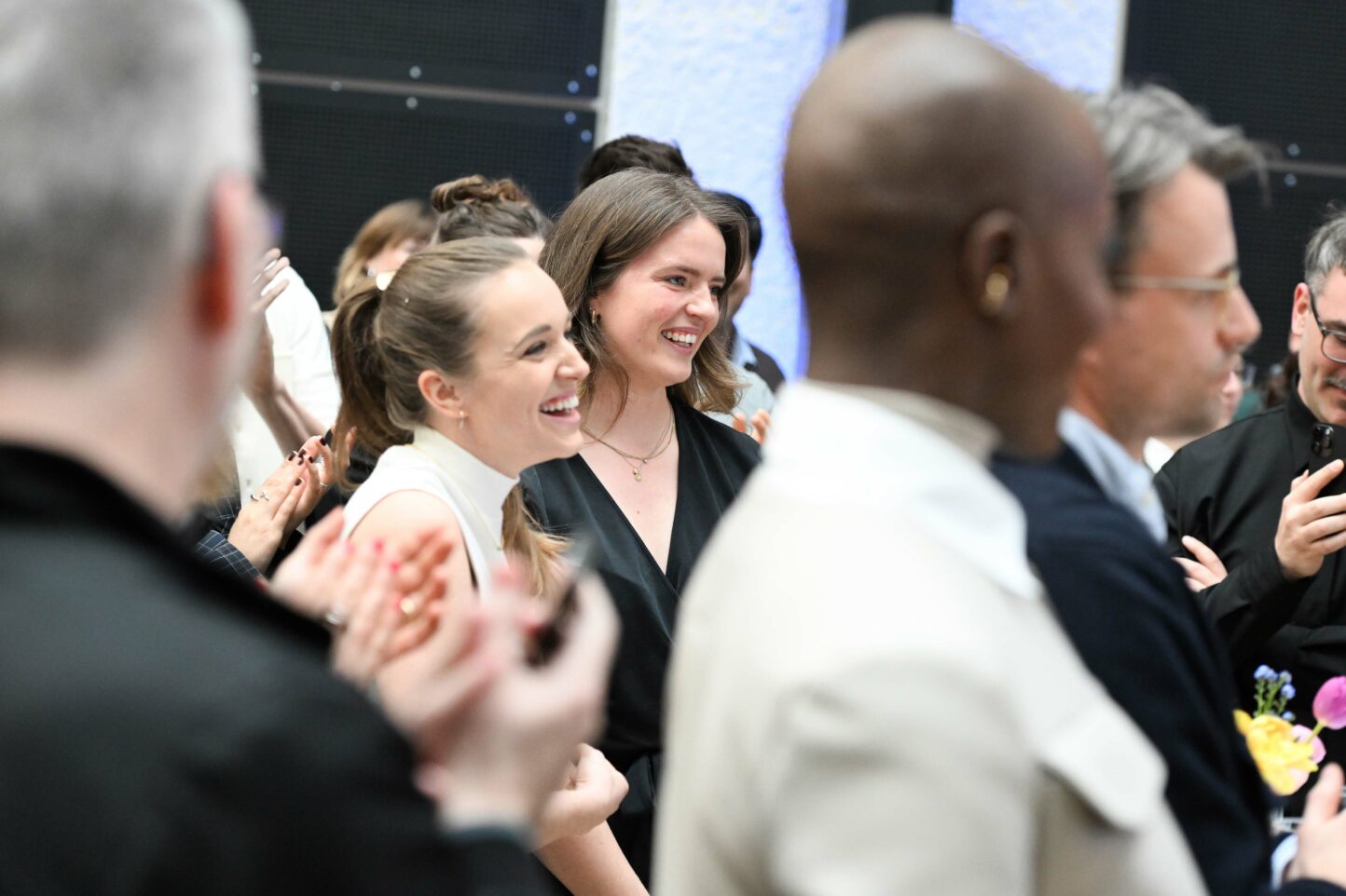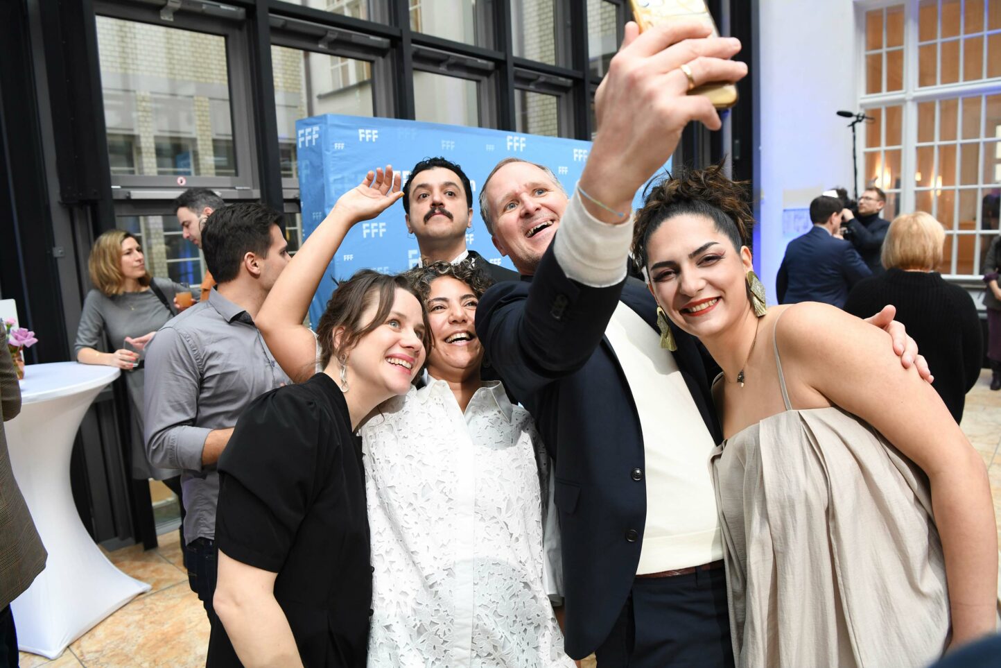 Im Mittelpunkt des Empfangs standen die Teams der geförderten Projekte, die bei der 74. Berlinale 2024 Premiere feierten: Matthias Glasners Sterben (Porte au Prince Film und Kultur Produktion) im Wettbewerb, Julia von Heinz‘ und John Questers Treasure (Seven Elephants/ Kings & Queens Filmproduktion) in der Reihe Special Gala und Narges Kalhors Shahid (Michael Kalb Filmproduktion) im Forum.